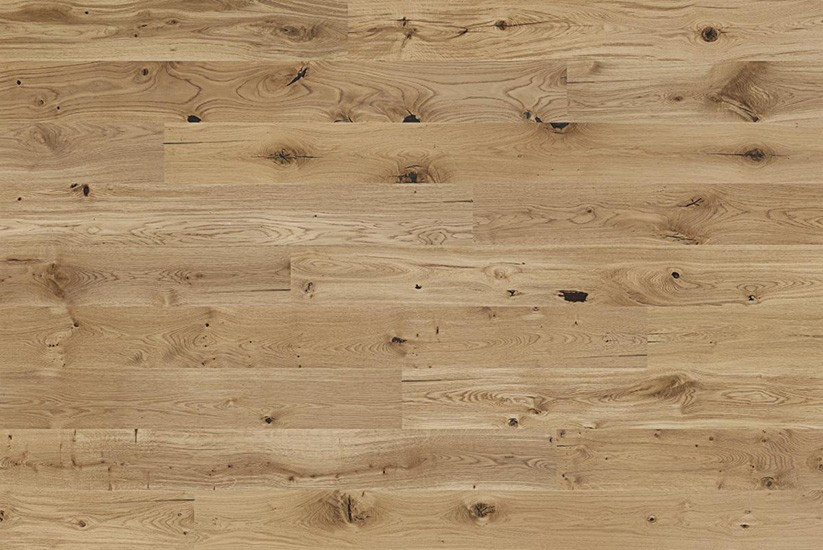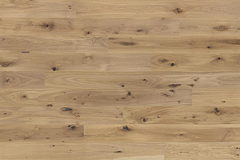 Once upon a time raw oak materials were considered too rustic for flooring. Today this wood is treasured and the larger the cracks, knots and colour variations, the better! With our Heritage collection, wood grains are enhanced with brushing and staining and treated with a natural hardwax oil to emphasize the beautiful details that make each plank unique. The result is an attractive wood floor with a fantastic patina.