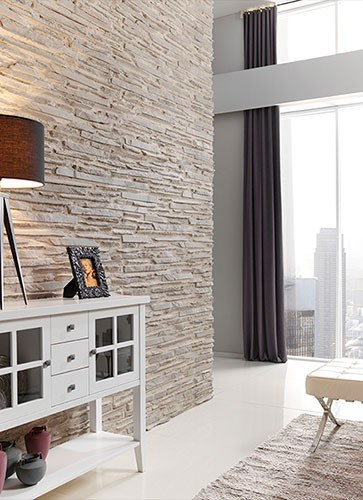 'Thin Slate' is a stone coating option which also provides spaciousness.