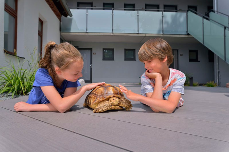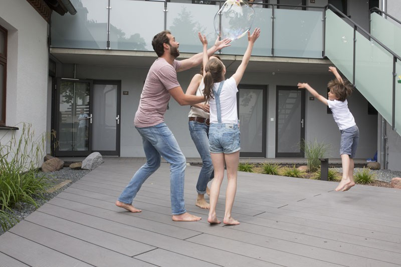Too refined for outside? As if! The megawood ®  PREMIUM PLUS barefootboards are a top-quality product. This is where unique specimens meet volume production: The uniqueness of the planed floorboard surface is combined with the advantages of the finest surface structure in dark, refined colours.