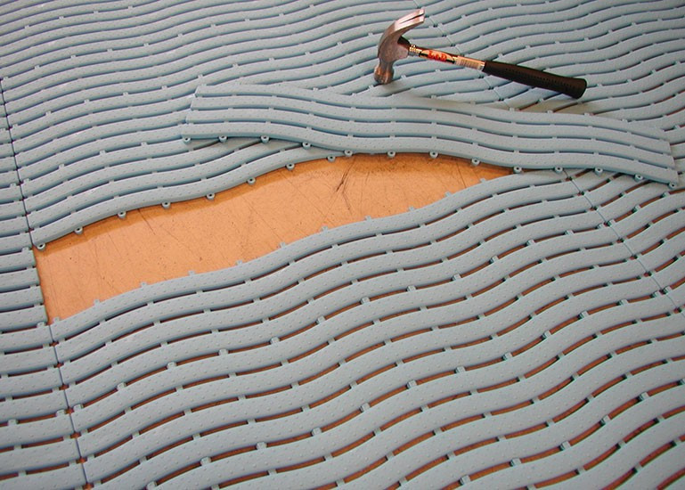Ultima can be also used to cover large areas, as the Ultima tiles have a built in connecting system that allows rolls to be easily interlocked lengthwise. Rolls can be assembled next to each other with separate connectors.
