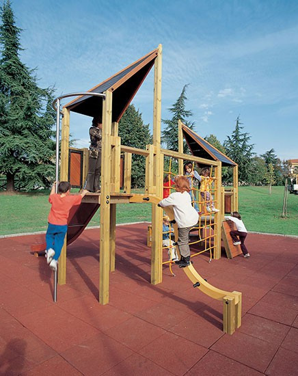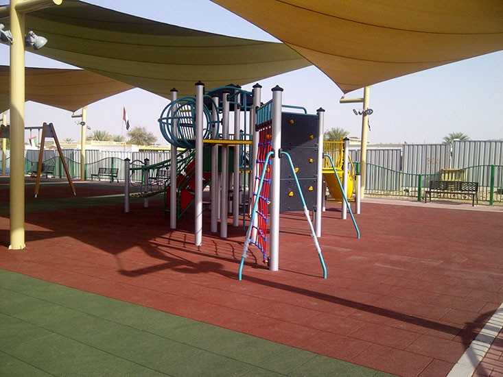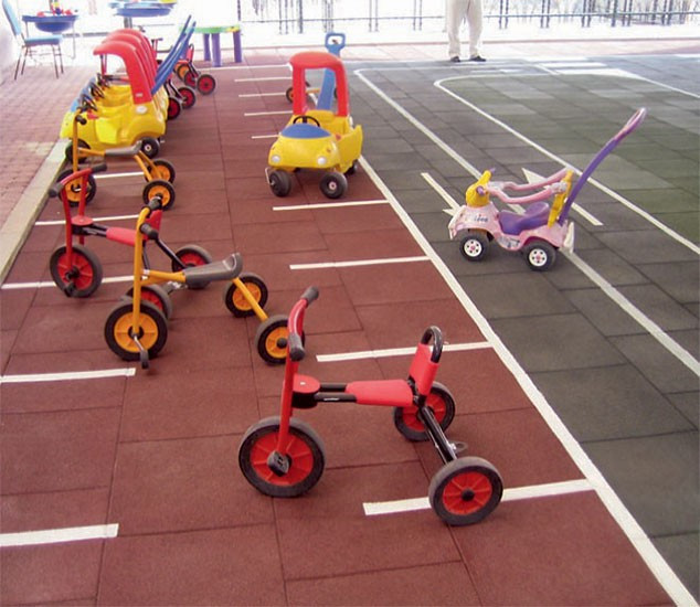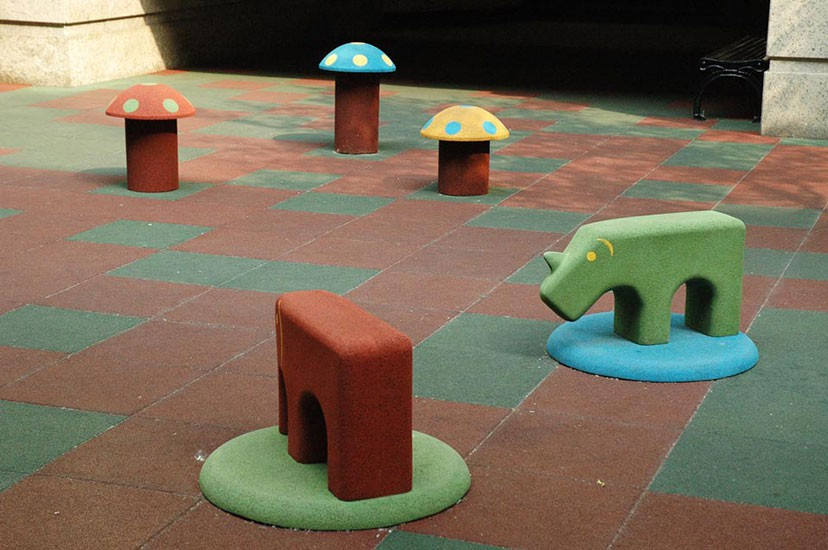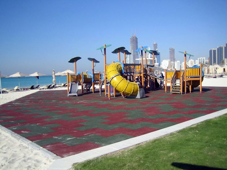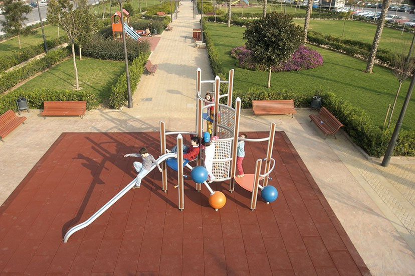 EUROFLEX® Elastic Slabs are used as fall-impact protection surfacing in conformance with EN 1177:2018, EN 1176-1:2017 for fall heights up to 3,0m and under outdoor playground equipment in accordance with DIN EN 16630:2015-06 for fall heights 1,0 m up to 2,30 m or as elastic surfacing slabs on school recess areas. Conditionally resistant to spiked golf shoes or edge trim. Easy and inexpensive to install – with excellent dimensional stability due to integrated connector pins and interlocking masonry-style installation. EUROFLEX® Elastic Slabs are manufactured by an environment-friendly process and can be recycled as process raw material at the end of their service life. They can be played on under almost any weather conditions.