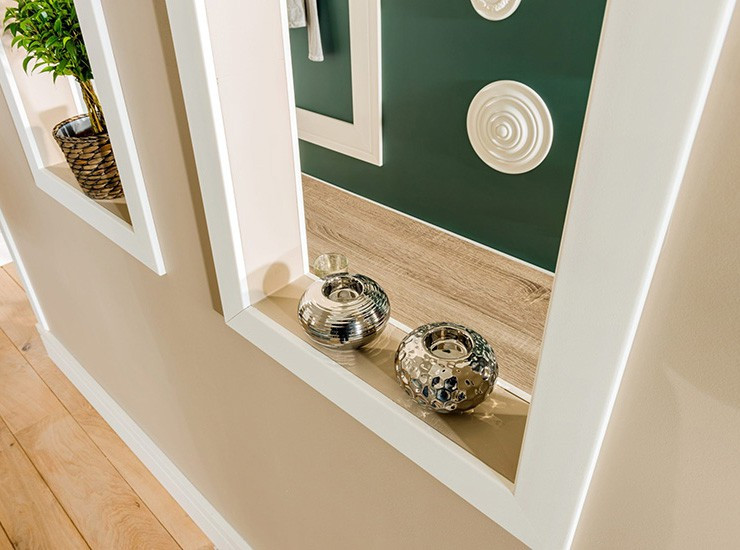 The versatile chai rails (panel mouldings) from NOËL & MARQUET decorate, shape and embellish your walls by framing, outlining and dividing into fields. They are light and easy to install. Thanks to a primer, they can be painted over immediately and provide excellent protection against shocks thanks to their high material density.