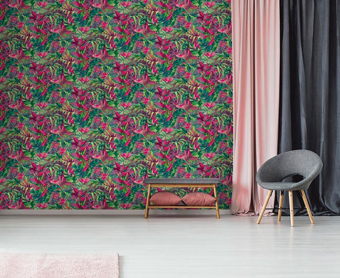 Bright and colourful jungle wallpaper