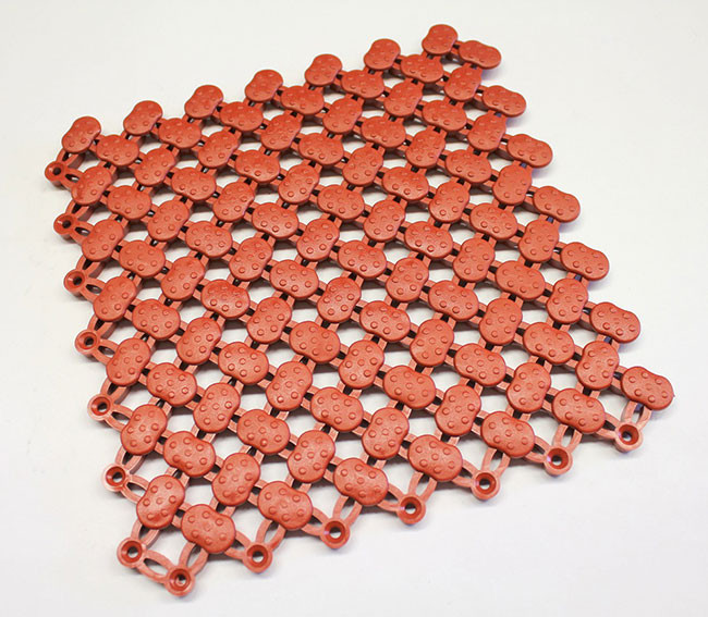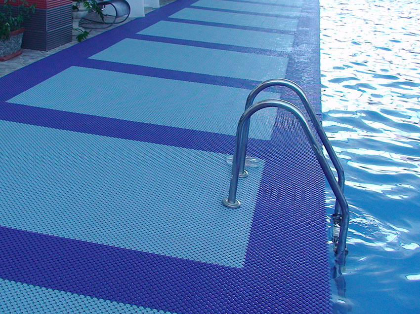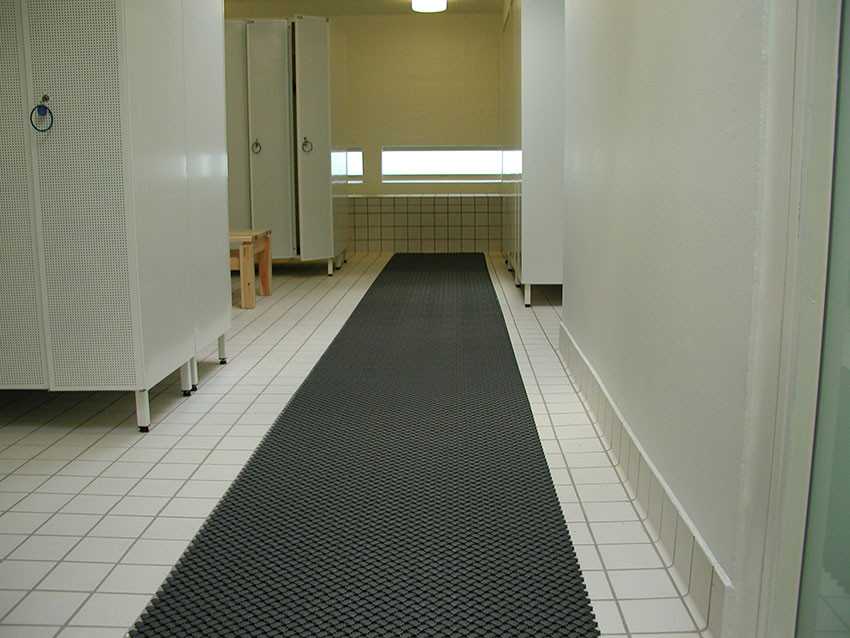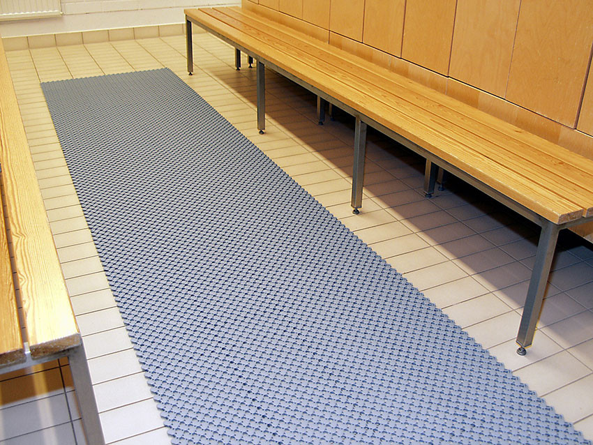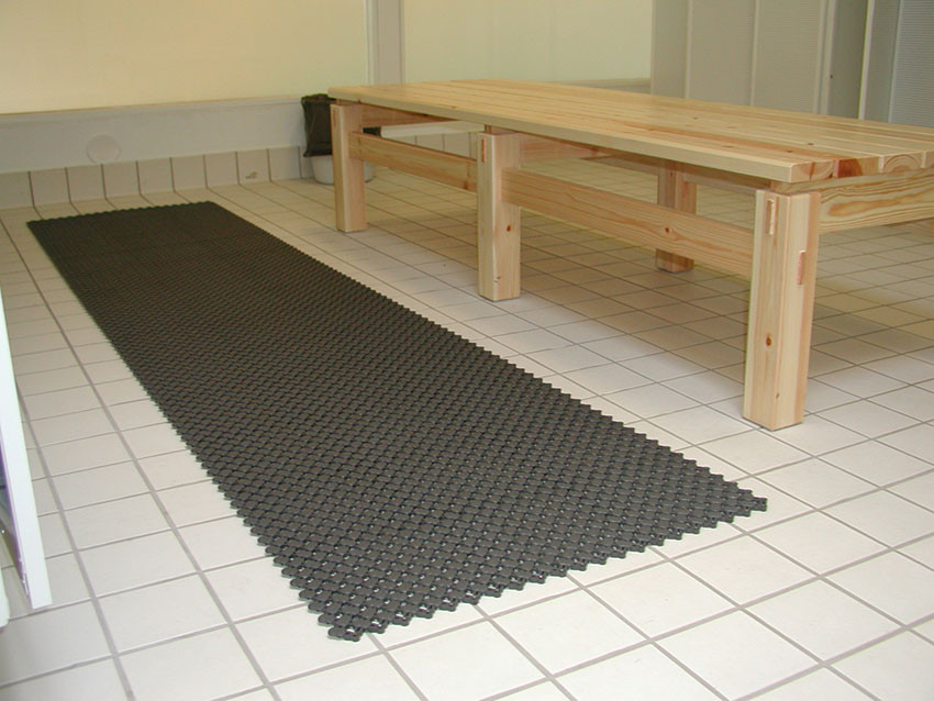 Lagune interlocking wet area mat is ideal for swimming pool surrounds, showers, spas, saunas and changing rooms. Its unique curved design allows water to easily drain off, providing a slip resistant and safe surface. Lagune is warm and comfortable and ideal with barefoot traffic.